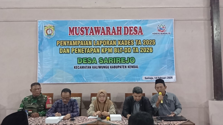 Sarirejo – Pemerintah Desa Sarirejo menyelenggarakan Musyawarah Desa (Musdes) dengan agenda penyampaian laporan Kepala Desa Tahun Anggaran 2025 serta penetapan Keluarga Penerima Manfaat (KPM) Bantuan Langsung Tunai Dana Desa (BLT DD) Tahun 2026. Kegiatan tersebut dilaksanakan pada hari Sabtu, 14 Februari 2026, bertempat di Gedung Serba Guna Desa Sarirejo.