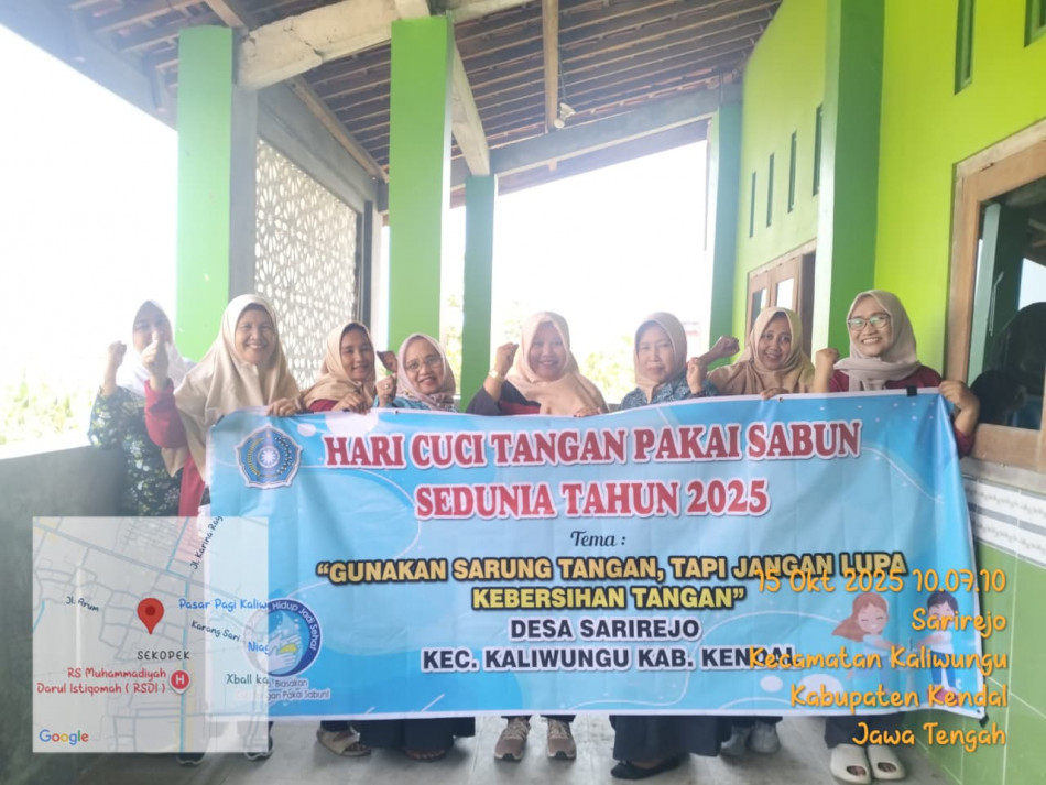 Sarirejo, 15 Oktober 2025 — Dalam rangka memperingati Hari Cuci Tangan Pakai Sabun Sedunia (HCTPS) yang jatuh setiap tanggal 15 Oktober, PKK Desa Sarirejo Kec Kaliwungu Kab Kendal dan MI NU 76 Unggulan Sullamul Hidayah Desa Sarirejo, Kecamatan Kaliwungu, Kabupaten Kendal, menggelar kegiatan edukatif bertema "Gunakan Sarung Tangan, Tapi Jangan Lupa Kebersihan Tangan".